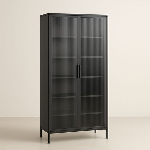 Chariot de Service à Deux Niveaux en Métal et MDF Noir et Blanc -