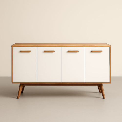 Lit Double Bois et Similicuir Blanc 140x200 cm -